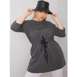 Tmavo šedá melanžovej plus size tunika s nápismi.