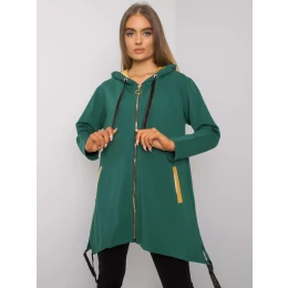 Tmavo zelená mikina na zips s vreckami.