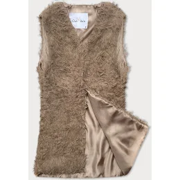 Tmavobéžová kožušinová vesta s dlhými vlasmi (1402)