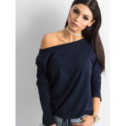 Tmavomodrá voľná dámska blúzka so zaväzovaním na spodku (4691)