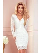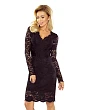 170-15 Čipkované šaty s dlhými rukávmi a výstrihom - tmavomodré