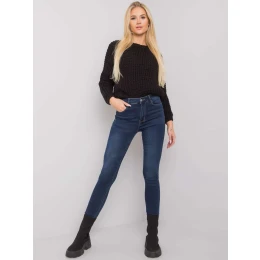 Tmavomodré džínsové džínsy s vysokým pásom .