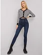 Tmavomodré džínsové džínsy s vysokým pásom tube topy.
