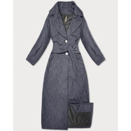 Tmavomodrý dlhý pruhovaný dámsky kabát s opaskom S'West (B8542-26)