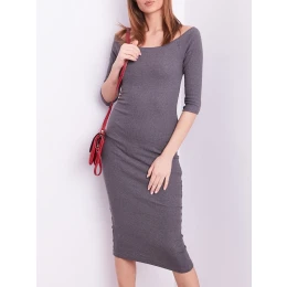 Drobné rebrované šaty s odhalenými ramenami v tmavo šedej farbe .