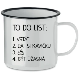 Smaltovaný Plecháček pro Chvíle Pohody - S Úsměvem a Teplem V našem rychlém světě je důležité najít si chvilku klidu a pohody. Naše nová kolekce smaltovaných plecháčků je jako stvořená právě pro tyto momenty. Každý plecháček je vyroben s láskou a pečlivostí, aby doprovázel vaše chvíle odpočinku, ať už si vychutnáváte šálek voňavé kávy, lahodného čaje nebo teplého kakaa. S objemem 350 ml jsou tyto tradiční smaltované hrnky perfektními společníky pro každý den. A co je na nich nejlepší? Každý z nich nese vtipný motiv: TO DO LIST: BÝT ÚŽASNÁ, který rozjasní váš den a přinese úsměv na tvář. Tyto hrnky jsou jako malé pohlazení pro duši - ideální pro chvíle, kdy jste sami sebou, nebo pro ty nezapomenutelné okamžiky strávené s vašimi nejbližšími. Zapomeňte na chvíli na všechny starosti a užijte si klidný moment s naším smaltovaným plecháčkem. Objednejte si jej nyní a připravte se na maximální požitek z každého doušku! Doporučujeme ruční mytí tohoto produktu pro zachování jeho kvality a trvanlivosti. Nedoporučujeme umisťovat do myčky na nádobí.parametre