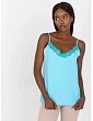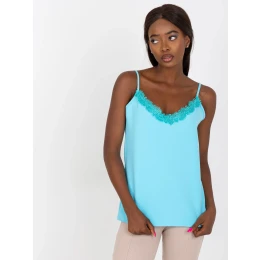 Modrý top bez ramienok s čipkou.
