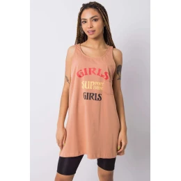 Tričko bez rukávov, s okrúhlym výstrihom a ozdobným nápisom na prednej strane.