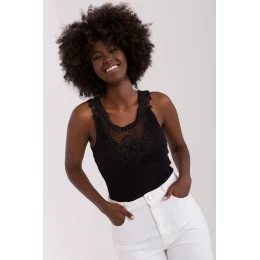 Tričko bez ramienok z rebrovanej tkaniny s okrúhlym výstrihom. Výstrih zdobí všitá čipka.
