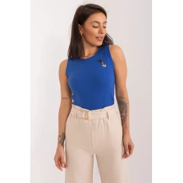 Ležérny top štandardnej dĺžky vyrobený zo zmesi bavlny, viskózy a elastanu, ktorá poskytuje pohodlie a pružnosť. Hladký, pruhovaný materiál mu dodáva módny charakter a okrúhly výstrih krásne zvýrazňuje krk a ramená. Model bez rukávov zdobí elegantná brošňa, ktorá mu dodáva jemný, výrazný akcent. Je ideálny na každodenné nosenie, dobre sa kombinuje s džínsami aj sukňami.