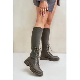 Dámske čižmy vyrobené z kombinácie ekokože a textilného materiálu. Model sa vyznačuje zaoblenými špičkami, ktoré zaručujú pohodlie pri nosení. Vnútro čižiem je vyplnené koženým vankúšikom, ktorý je obmedzený na časť chodidla. Elastický zvršok s moderným šnurovaním dodáva čižmám štýlový a moderný vzhľad.