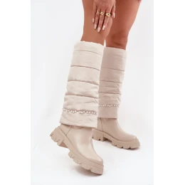 Tieto dámske čižmy vyrobené z kombinácie ekokože a textilného materiálu sú štýlovou ponukou na chladné dni. Vložený strih zaručuje pohodlie pri obúvaní. Vnútro vystužené kožou zaručuje teplo a pohodlie pri nosení. Zaoblená špička zdôrazňuje klasický charakter topánok, zatiaľ čo jemné korálky sú elegantným detailom, ktorý celku dodáva výnimočný šarm. Ide o módne a pohodlné čižmy, ktoré sú ideálne na každodenné nosenie.