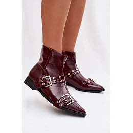 Dámske lakované čižmy sú štýlovým dizajnom na prechodné obdobie. Model s plochým podpätkom poskytuje pohodlie na každodenné nosenie a zapínanie na zips uľahčuje rýchle obúvanie. Výrazným prvkom sú dva ozdobné remienky s prackami, ktoré dodávajú topánkam módny vzhľad.