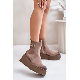 Tieto dámske čižmy z prírodného semišu sú štýlovou voľbou na chladnejšie dni. Stoja na pevnej platforme s ihličkovým podpätkom a poskytujú pohodlie a stabilitu. Zips na boku zvršku uľahčuje ich obúvanie a polstrovaný podpätok im dodáva odolnosť a oporu. Vnútro s plstenou podšívkou zaručuje teplo a ozdobný prvok na zvršku podčiarkuje ich jedinečný charakter. Tento model bude dokonalým doplnkom k rôznym outfitom.