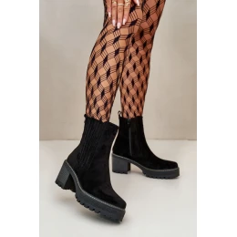 Dámske členkové čižmy vyrobené z ekologického semišu. Osadené na stabilnom stĺpikovom podpätku. Vo vnútri polstrovaná podšívka topánky, ktorá poskytuje teplo a pohodlie pri nosení. Tento model sa zapína na zips, vďaka čomu sa ľahko obúva a vyzúva. Koniec čižmy je zaoblený. Ideálne na jesenné a zimné stylingy.