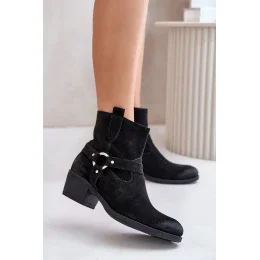 Dámske čižmy z prírodného semišu. Stoja na nízkom podpätku. Mandľový tvar špičky. Vnútorná strana z plsti na udržanie tepla počas chladnejších dní. Zapínanie na zips. Pruhy na zvršku. Tento model sa bude skvele hodiť ku nohaviciam a šatám.