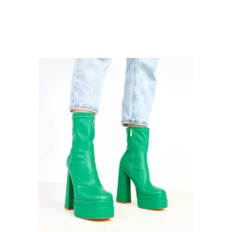 Elegantné členkové čižmy na vysokom stĺpiku vyrobené z kvalitnej ekokože. Model má pevnú siluetu, 15 cm podpätok v tvare stabilného stĺpika a 5 cm platformu, ktorá vyrovnáva výšku a poskytuje väčšie pohodlie pri nosení. Čižmy majú okrúhlu špičku a 17,5 cm zvršok, ktorý sa dokonale prispôsobí chodidlu a podčiarkuje moderný charakter štylizácie. Praktické zapínanie na zips uľahčuje obúvanie a gumová podrážka zaručuje dobrú priľnavosť. Vnútro je vyrobené z nepodšitého materiálu, čo znamená, že čižmy sa skvele hodia na prechodné obdobie a k rôznym outfitom, každodenným aj elegantnejším.