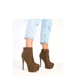 Elegantné dámske členkové čižmy vyrobené z mäkkej ekokože. Model má štíhly špicatý nos, 15-centimetrový podpätok a 4-centimetrovú platformu, ktorá poskytuje stabilitu a pohodlie pri nosení. 9,5-centimetrový driek jemne obopína chodidlo a praktické zapínanie na zips uľahčuje obúvanie a vyzúvanie čižiem. Vnútro je vybavené látkou a absencia podšívky znamená, že členkové čižmy sa skvele hodia na prechodné ročné obdobia. Ide o módny a elegantný model, ktorý je ideálny na večerné stylingy, šaty a súpravy, kde záleží na elegancii a ženskosti.