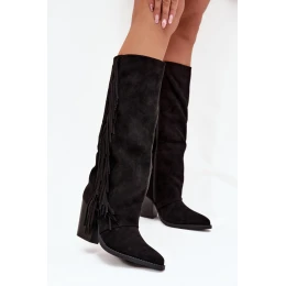Dámske kovbojské čižmy nad kolená z ekokože sú módnou voľbou pre mnohé štylizácie. Stĺpikový podpätok zaručuje pohodlie a zapínanie na zips uľahčuje obúvanie. Špicatá špička. Šnúrky na boku striešky dodávajú trochu voľnosti a boho charakteru. Ideálne sú na každodenné štýlové kombinácie, skvele sa hodia k šatám, sukniam a nohaviciam a vytvárajú moderný kovbojský vzhľad.