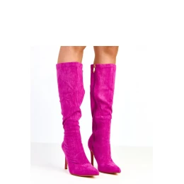 Dámske čižmy sú elegantným modelom vyrobeným z kvalitnej ekokože, ktorý očarí nadčasovým štýlom. Tenký špicatý nos jemne zjemňuje nohu a úzka holeň siahajúca pred koleno dodáva postave ľahkosť a opticky predlžuje nohy. Čižmy sú osadené na tenkom podpätku s dĺžkou 10,5 cm, vďaka čomu pôsobia veľmi žensky a elegantne. Čižmy sú vybavené praktickým zipsom, ktorý uľahčuje obúvanie, a pohodlnou stielkou z mäkkej tkaniny. Nezateplený model, ideálny na prechodné obdobia a elegantné udalosti.