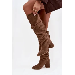 Tieto dámske čižmy vyrobené z prírodného semišu majú elegantný dizajn, ktorý je ideálny na jesenno-zimnú sezónu. Mäkká, na dotyk príjemná koža im dodáva elegantný charakter a zvrásnený zvršok je módnym akcentom, ktorý podčiarkuje jedinečný štýl tohto modelu. Umiestnené na stabilnom stĺpikovom podpätku zjemňujú postavu a zároveň poskytujú pohodlie a istotu kroku pri nosení. Vďaka nápadnému strihu sa ľahko a pohodlne obúvajú a prešívaný interiér zaručuje teplo aj počas chladnejších dní. Ide o univerzálne čižmy, ktoré doplnia elegantné štýly aj voľné kombinácie a dodávajú im ženský charakter.