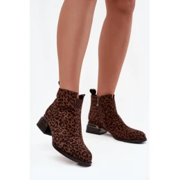 Dámske členkové čižmy z prírodného semišu v sebe spájajú eleganciu s módnym charakterom. Model zaujme štýlovou potlačou pantera, ktorá celému výrazu dodáva ženský pazvuk. Umiestnený na stabilnom mačacom podpätku poskytuje pohodlie a sebavedomý krok. Jemne vyhrievaný interiér topánky zaručuje komfort počas chladnejších dní. Zaoblená špička a ozdobné prešitie vedúce pozdĺž holene dodávajú elegantný vzhľad. Čižmy sa zapínajú na zips, vďaka čomu sa ľahko obúvajú. Ide o ideálny model pre ženy, ktoré rady kombinujú klasiku s trochou dravého štýlu, skvelá voľba na každodenné aj štýlovejšie kombinácie.