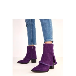 Elegantné členkové čižmy s otočeným golierom, ktoré spájajú eleganciu s moderným detailom. Sú vyrobené z kvalitnej semišovej ekokože, vyzerajú efektne a sú ideálnou voľbou na chladnejšie dni. Model má špicatú špičku, ktorá opticky zjemňuje chodidlo, a 9 cm podpätok zaručuje stabilitu a pohodlie pri chôdzi. Otočený golier dodáva čižmám charakter a módny akcent a zips uľahčuje rýchle obúvanie. Vďaka vystuženiu a textilnej stielke čižmy zaručujú teplo a pohodlie počas celého dňa. 13 cm golier krásne obopína členok a vytvára moderný a elegantný vzhľad.