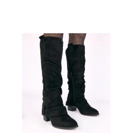 Elegantní kozačky s otočeným límcem jsou stylovým návrhem pro ženy, které milují kombinaci klasiky a moderních detailů. Vyrobené z měkké ekologické semišové kůže, představují mimořádně ženský a decentní vzhled, ideální na chladnější dny. Model má kulatý nos a jemné zateplení, díky čemuž poskytuje termální pohodlí a pohodlí i při delším nošení. Kozačky se zapínají na praktický zip, co usnadňuje jejich obouvání a přizpůsobení noze. Stabilní sloupek o výšce 7 cm dodává postavě eleganci a zároveň zachovává pohodlí při chůzi. Vysoký límec (39 cm) a jeho efektní otočení dodávají modelu charakter a způsobují, že kozačky skvěle vypadají jak k sukním, tak k přiléhavým kalhotám. Vnitřek boty je vyztužen měkkou látkou, která poskytuje příjemný pocit při každém kroku. Jsou to klasické a zároveň okouzlující kozačky, ideální na podzimně-zimní sezónu.