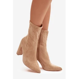 Elegantné dámske členkové čižmy z eko-semišu sú modelom, ktorý podčiarkne každý outfit. Osadené na stabilnom stĺpikovom podpätku poskytujú pohodlie a ženský vzhľad, zatiaľ čo špicatá špička opticky predlžuje nohy. Praktické zapínanie na zips uľahčuje obúvanie a vyzúvanie. Jemné prešívanie na krku čižmy je štýlovým detailom, vďaka ktorému tento model vynikne. Ideálne na každodenné aj elegantné outfity.