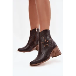 Čižmy pre dámy z prírodnej kože sú dizajnom, ktorý spája eleganciu s módnym nádychom. Vyznačujú sa ažurovým vzorom, ktorý im dodáva ľahkosť a originálny charakter, čo ich dokonale zaraďuje do aktuálnych trendov. Osadené na stabilnom stĺpikovom podpätku zabezpečujú nielen pohodlie, ale aj jemne zužujú siluetu. Mandľová špička podčiarkuje jemný, elegantný štýl tohto modelu a zároveň zabezpečuje pohodlie pri nosení. Sú to čižmy, ktoré dokonale doplnia šaty alebo sukne, ako aj nohavice, čím dodajú každému outfitu výnimočný charakter.
