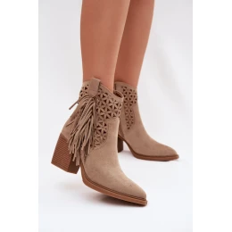 Dámske čižmy JEZZI v kovbojskom štýle sú veľkolepou ponukou pre ženy, ktoré rady zvýrazňujú svoje outfity. Sú vyrobené z ekokože, vyzerajú štýlovo a zapadajú do módnej westernovej klímy. Priesvitný zvršok zdobený riasami im dodáva ľahkosť a originálny charakter. Model s pevným podpätkom poskytuje pohodlie pri chôdzi, zatiaľ čo špicatá špička opticky zjemňuje chodidlo. Zapínanie na zips uľahčuje rýchle obúvanie. Sú ideálnymi čižmami na styling s boho nádychom, a to k šatám aj džínsom.
