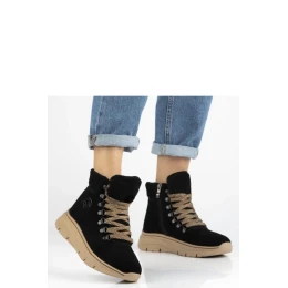 Černé botky z přírodního semiše s ozdobnou šněrovací šňůrkou Grega Filippo jsou nabídkou pro ženy, které ocení spojení elegance, pohodlí a moderního designu. Vyrobené z vysoce kvalitního přírodního semiše působí velmi stylově a zároveň jsou příjemné na dotek a dobře se přizpůsobují noze. Klasický, hluboký odstín černé způsobuje, že tyto dámské botky lze snadno sladit jak s každodenními, tak s elegantnějšími stylizacemi. Charakteristickým prvkem modelu je ozdobná šněrovací šňůrka Grega, která boty dodává originalitu a zdůrazňuje jejich jedinečný charakter. Díky ní získávají černé botky lehce rockový, ale zároveň ženský výraz. Jsou to ideální volba pro ty, kteří chtějí vyniknout z davu a hledají obuv s módním detailem. Stylové šněrování nejen zdobí, ale také umožňuje lepší přizpůsobení svršku tvaru nohy. Značka Filippo je známá pro svou péči o pohodlí, proto jsou černé botky ze semiše vybaveny stabiln