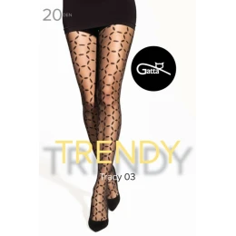 Punčochové kalhoty Gatta Tracy 03 20 DEN jsou stylovou nabídkou pro ženy, které ocení eleganci v moderním vydání. 20 DEN transparentní struktura jemně zvýrazňuje nohy, dodává jim lehkost a pravidelný, geometrický vzor po celé délce přitahuje pozornost a dodává stylingu osobitý charakter. Model z vysoce kvalitní příze (89 % polyamid, 11 % elastan) zaručuje dokonalé přizpůsobení postavě a pohodlí při nošení po celý den. Elastický materiál dokonale přilne k nohám, zdůrazňuje jejich tvar a zajišťuje volnost pohybu. Punčochové kalhoty Tracy 03 z kolekce Trendy značky Gatta jsou ideální pro elegantní styling k šatům a jehlovým podpatkům, stejně jako pro módní doplněk každodenního oblečení. Jsou ideální volbou pro ženy, které chtějí vyniknout decentním, ale účinným doplňkem.