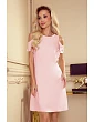 Trapézové dámske šaty s volánikmi na rukávoch.