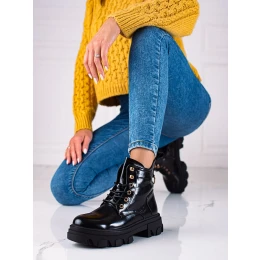 Trendy černé dámské kotníčkové boty na plochém podpatku