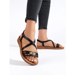 Trendy černé dámské sandály bez podpatku