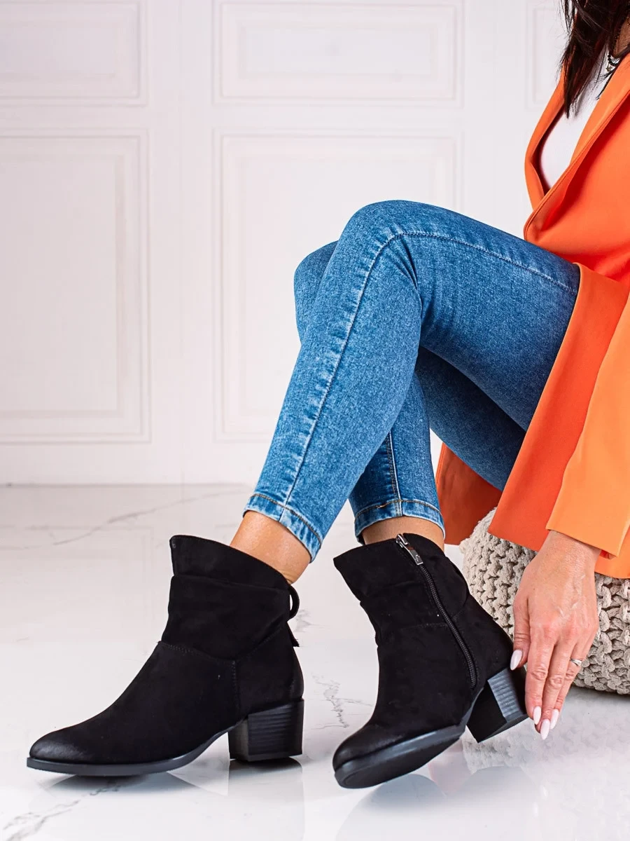 Trendy čierne členkové topánky pre ženy na širokom podpätku