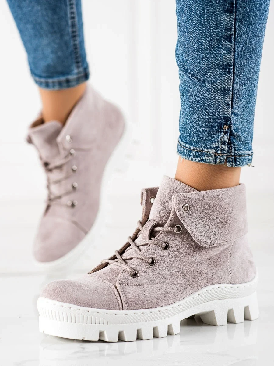 Trendy kotníčkové boty dámské fialové na plochém podpatku