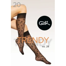 Podkolienky Gatta Trendy pattern 28 sú štýlovým doplnkom, ktorý dodá vášmu oblečeniu charakter a ľahkosť. Sú vyrobené z jemnej, elastickej 20 denier priadze a majú výrazný panterový vzor inšpirovaný súčasnými módnymi trendmi. Vďaka kombinácii polyamidu a elastilu dokonale priliehajú k nohe, čím zaručujú pohodlie a odolnosť. Vďaka priehľadnej štruktúre sú nohy štíhle a elegantné. Perfektne sa hodia k šatám, sukniam a elegantným topánkam - pre ženy, ktoré rady kombinujú triedu s trochou dravého štýlu.