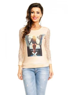 Dámske tričko s čipkovým chrbtom a rukávmi PM9807 - Paris Et Moi