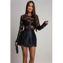 Tato dámská halenka z elastické krajky je jedinečnou kombinací elegance, ženskosti a pohodlí. Jemná elastická krajka se dokonale přizpůsobí siluetě, jemně zvýrazní postavu a zajistí plnou volnost pohybu. Díky rovnému střihu vypadá model nadčasově a hodí se pro mnoho typů postavy a kulatý výstřih mu dodává klasický, tónovaný charakter. Dlouhé krajkové rukávy vnášejí smyslný nádech a vytvářejí efekt lehkosti a sofistikovanosti. Průhledná struktura materiálu dodává halence jedinečný půvab, takže se skvěle hodí na večerní vycházky, rodinné oslavy i formálnější setkání. Skvěle se hodí k sukním i elegantním kalhotám, což vám umožní vytvořit styling plný noblesy a nadčasového šarmu.