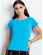 Žlté tričko s výrezom a zaväzovaním na chrbte .
