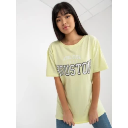 Svetložlté voľné tričko s potlačou .