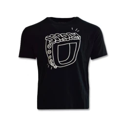 Na prednej strane trička je potlač krúžkov v bielej farbe.