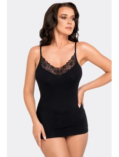 Hladká blúzka na tenkých, nastaviteľných ramienkach s ozdobnou aplikáciou vo výstrihu, vďaka ktorej blúzka vyzerá veľmi zaujímavo.