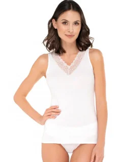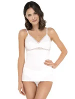 Kvalitná bavlnená blúzka s tenkými nastaviteľnými ramienkami. Vyrobené z mäkkého, na dotyk príjemného úpletu, profilované košíčky zakončené čipkou. Jemné uvoľnenie pod poprsím.