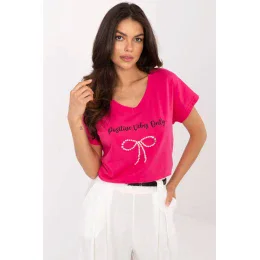 Dámske tričko na voľný čas vytvorené s ohľadom na každodenné pohodlie a módny vzhľad. Je vyrobené z kvalitnej bavlny s prídavkom elastanu, dokonale sa prispôsobí postave a poskytuje pohodlie počas celého dňa. Model štandardnej dĺžky má krátke rukávy a klasický okrúhly výstrih. Tričko zdobia nápadité aplikácie a potlače a ďalšie zirkónové ozdoby dodávajú celku jemný lesk a elegantný charakter. Ideálny dizajn na každodenné ležérne štylizácie, ktorý obsahuje detaily.