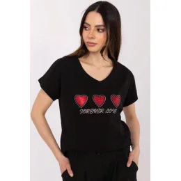 Toto dámske tričko v ležérnom štýle je pohodlnou a štýlovou voľbou na každodenné nosenie. Je vyrobené z mäkkej bavlny s prídavkom elastanu a poskytuje pohodlie a voľnosť pohybu počas celého dňa. Model má štandardnú dĺžku, krátke rukávy a klasický okrúhly výstrih. Na prednej strane je ozdobná aplikácia v tvare srdca obklopená trblietavými korálkami, ktorá dodáva tričku šarm a jemný lesk. Ideálna voľba pre ženy, ktoré ocenia pohodlie s nádychom romantického štýlu.