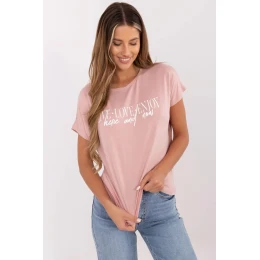 Ležérne dámske tričko so štandardnou dĺžkou je kombináciou pohodlia a módneho štýlu. Je vyrobené z mäkkej a elastickej zmesi viskózy a elastanu, čo zaručuje priliehavý strih a pohodlné nosenie. Model s krátkymi rukávmi a klasickým okrúhlym výstrihom sa skvele hodí na každodenné nosenie. Dominantou je potlač s nápismi na prednej strane, ktorá celku dodáva charakter. Skvelá voľba na každý deň k džínsom, legínam alebo sukniam.