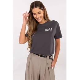 Toto dámske tričko v ležérnom štýle je všestrannou ponukou na každý deň. Je vyrobené z kvalitnej bavlny a poskytuje pohodlie a voľnosť pohybu počas celého dňa. Model má štandardnú dĺžku, klasický okrúhly výstrih a krátke rukávy. Na prednej strane dodáva jemný akcent malá potlač, zatiaľ čo na zadnej strane upúta pozornosť výrazná potlač s nápismi. Skvele sa hodí k džínsom, šortkám alebo sukniam a vyzerá výborne v mestskom, uvoľnenom štýle. 100%bavlna